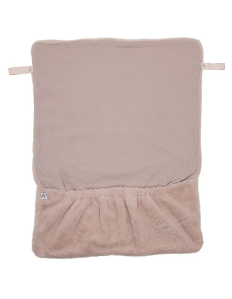 - Grâce à ses languettes sur les côtés, elle se fixe aisément sur la poussette ou sur le porte-bébé pour éviter que bébé ne se découvre.
