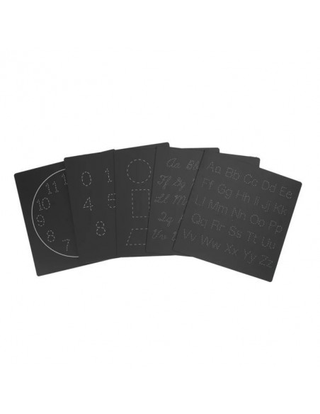 5 planches ardoises pour apprendre les lettres, les chiffres, les formes et l'heure.