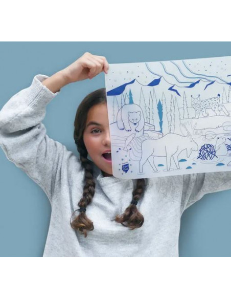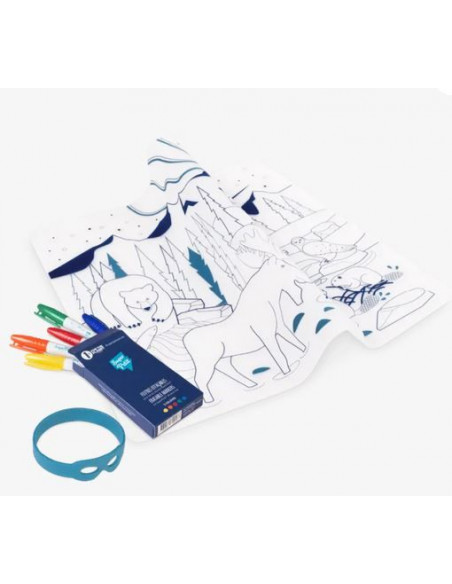 Ce set se plie facilement et s’emporte partout, il suivra votre petit artiste pour tous ses repas ou dans certaines salles d’attente interminables ! Grâce à ses 5 feutres lavables aux encres non toxiques, les enfants pourront colorier à l’infini leurs animaux préférés !