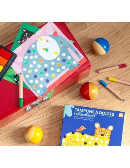 Utilisez le tampon encreur à 7 couleurs pour peindre les 10 illustrations issues de la collection les Toupitis, avec les doigts.