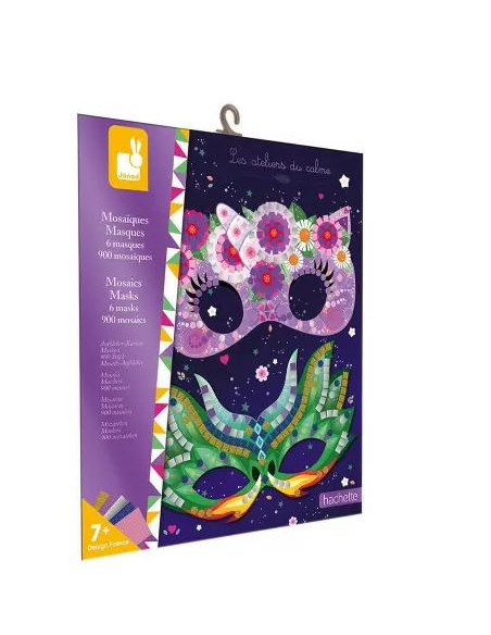 Issu de la collection "Les Ateliers du Calme" le kit contient 6 masques, 900 mosaïques en mousse et 6 élastiques pour permettre aux enfants de porter fièrement le création.