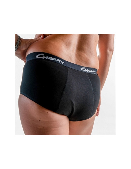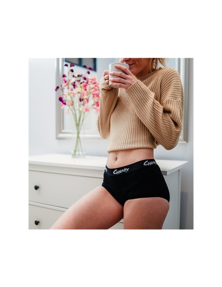 Culotte menstruelle qui peut être portée seule pendant la journée ou pour des activités sportives. Contient 4 couches absorbantes intégrées pour vous offrir une protection maximale lors de votre période de menstruations. Modèle shorty.
