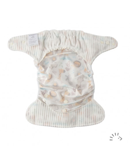 Cette culotte de protection respirante, à pressions est ajustable à toutes les couches lavables, les inserts ou même les langes prépliés.