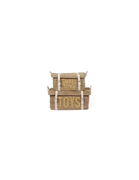Sur le plus grand panier, il est écrit "Toys" et sur le plus petit "Small toys".