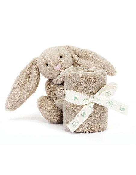 Le doudou tout doux lapin beige de la marque Jellycat.