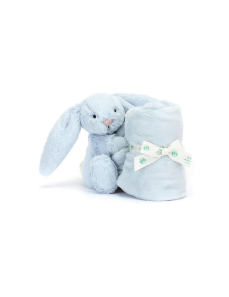Le doudou tout doux lapin bleu de la marque Jellycat.
