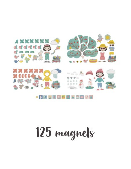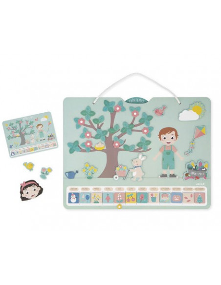 Calendrier éducatif en bois et magnétique comportant 125 magnets. Il aidera votre enfant à se repérer dans le temps et les saisons.
