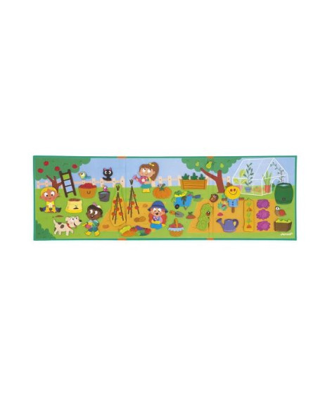 « Tu peux m’aider à arroser mes tomates ? » Vos enfants découvrent les joies du jardinage dès leurs 3 ans avec ce décor magnétique illustré alliant fruits et légumes du jardin. Ce jeu magnétique se compose d’un décor aimanté ainsi que de 30 magnets. La motricité fine, au cœur des premiers apprentissages de votre enfant, sera développée par la préhension des pièces aimantées. L’imagination ne sera pas en reste, chaque magnet une fois plongé dans le décor invite l’enfant à se créer ses propres histoires. Les salades ont bien poussé, les pommes sont prêtes à être récoltées, et l’épouvantail a l’air ravi d’avoir de la visite au potager ! Un grand nombre de scénarios amusants viendront prendre vie dans la tête de votre bambin ! Chouette, le décor peut se dresser verticalement, permettant à votre enfant de vous conter ses histoires ! De plus, ce même décor est pliable, facilitant son transport : plus aucune barrière ne se dressera devant l’imagination de votre enfant. Cette planche aimantée fait partie de la grande collection des Magnéti'stories, de véritables invitations à l’imagination et la rêverie. Ce jeu magnétique est composé de carton certifié FSC™ ainsi que de matériaux contrôlés.