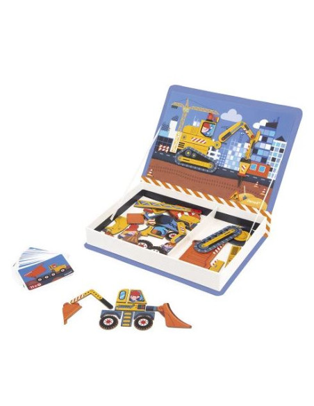 Coffret magnétique sur le thème de la Construction. Jeu éducatif, simple à utiliser et facile à ranger! En carton, marque Janod.