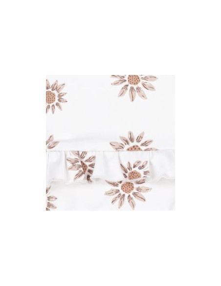 Composié d'un pantalon évasé en bas en velours mois et d'un t-shirt manches longues décorés de fleurs