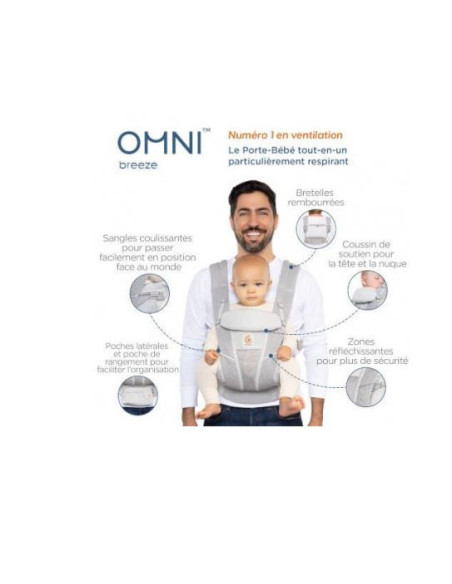 Le Porte-Bébé Omni™ Breeze offre encore plus de respirabilité. Classé n°1 en matière d’aération par rapport à des porte-bébés équivalents, l’Omni™ Breeze est fabriqué à partir d’un tissu Mesh SoftFlex™ qui assure une aération maximale, pour que vous et votre bébé soyez à l’aise et au sec toute la journée.