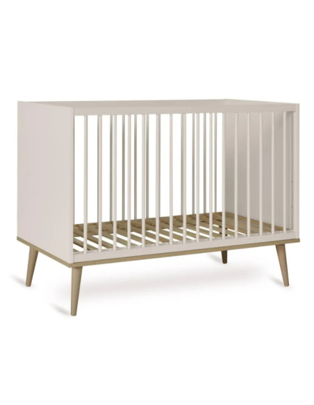 Les pieds, les côtés à barreaux et le sommier à lattes sont en hêtre massif et finis avec une laque polyuréthane.