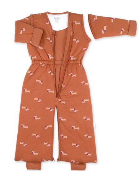 Les manches sont détachables, au cas où bébé aurait trop chaud et les jambes sont séparables, pour faciliter la mise en route de la marche.