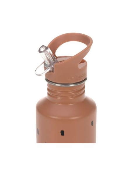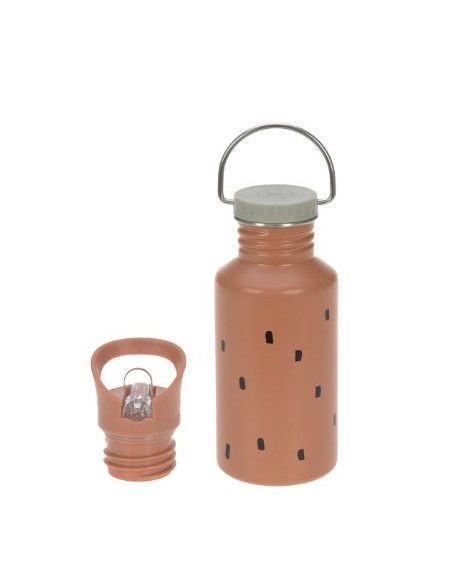 Gourde en acier inoxydable incassable et anti-fuites. Fournie avec un bouchon classique et un bouchon sport.