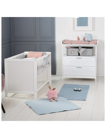 Chambre bébé DUO PROMO lit 60x120 + commode 2 tiroirs - Hamburg blanc