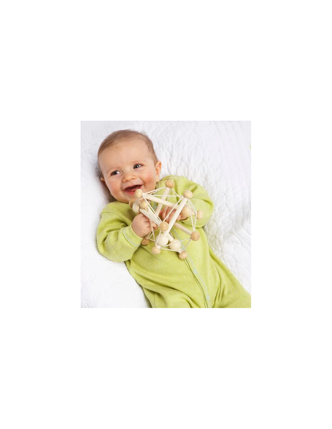 La construction en bois avec des liens élastiques permet au hochet et au jouet de s’aplatir, ou Skwish, et retrouve toujours sa forme originale