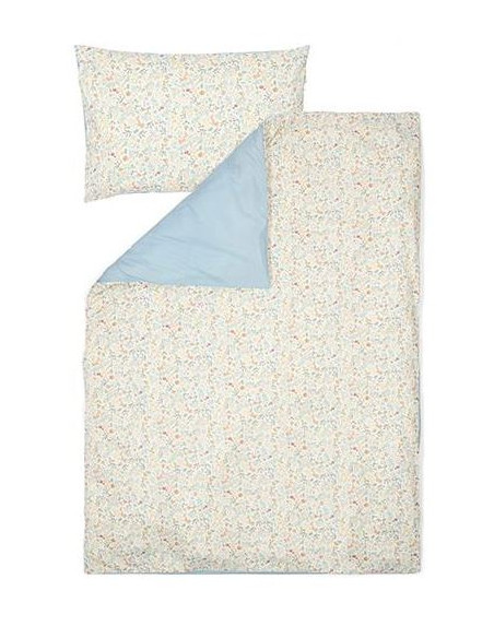 Housse de couette réversible en coton bio, avec sa taie d'oreiller assortie.