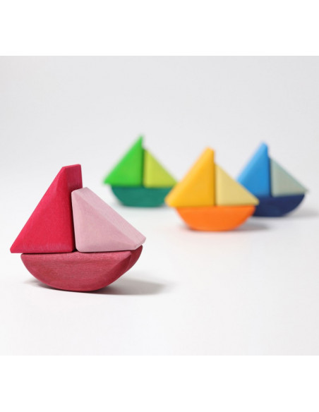 Petits bateaux à bascule en bois de la marque allemande Grimm's.