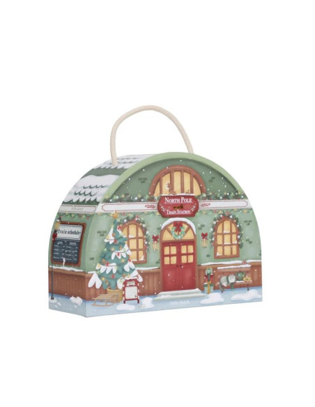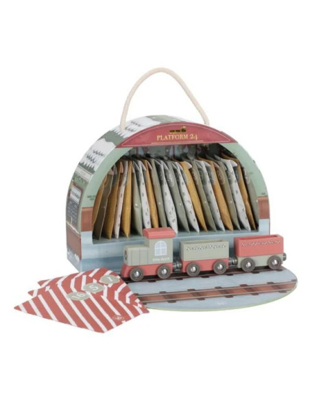 24 petits cadeaux pour patienter jusqu'à Noël et créer une jolie scène de train miniature. Déjà emballé et prêt à être exposé sur un buffet.