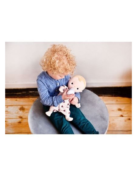 Votre bambin va adorer imiter papa ou maman en prenant soin de Lou, un poupon grandeur nature à nourrir, changer et habiller. Taille standard de poupée! Intérieur en polyester recyclé, marque Lilliputiens