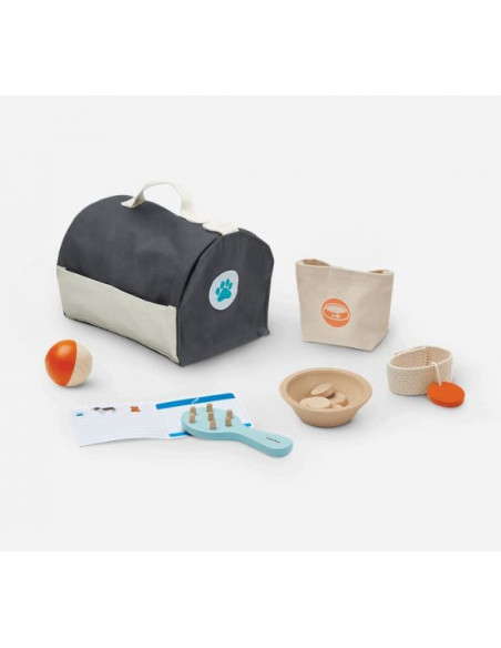 Cette trousse contient tout ce qu'il faut pour prendre soin de son animal en peluche! En bois durable, tissu et peinture à l'eau de la marque Plan Toys, dès 3 ans.