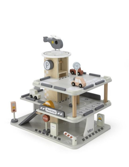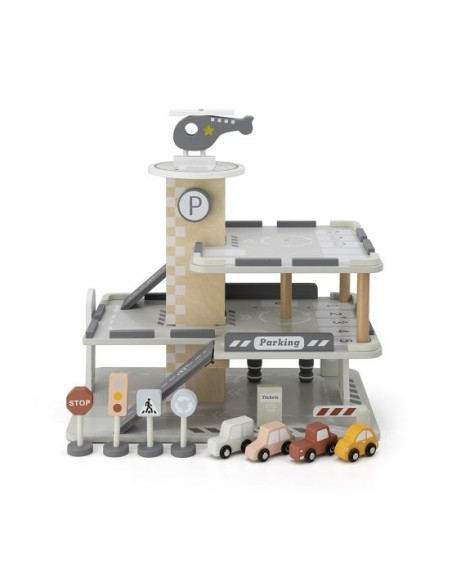 Avec ce grand parc de stationnement en bois, votre enfant stimule son imagination et augmente sa motricité.