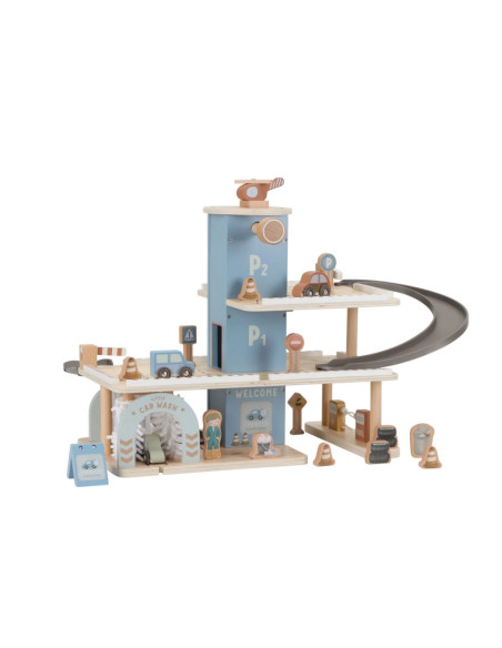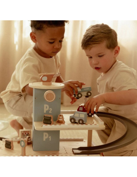 Votre enfant va adorer faire rouler les différents véhicules dans les tournants de ce garage en bois.