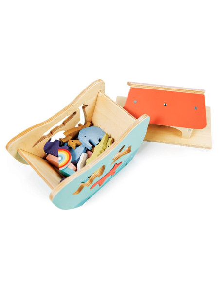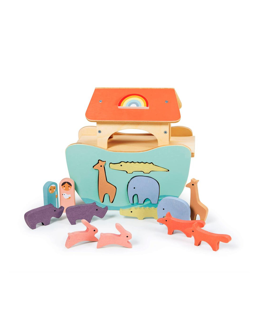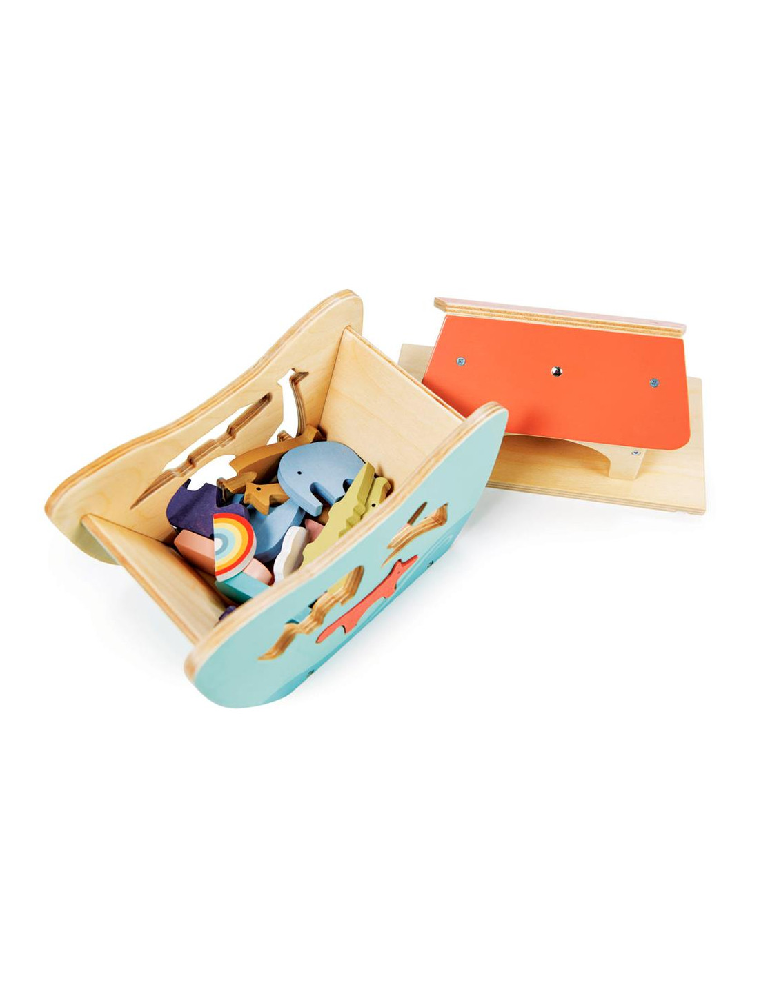 Mr et Mme Noah, les gardiens de nos animaux peuvent être placés au sommet de l'arche, tandis que tous les animaux peuvent être rassemblés à l'intérieur de la coque et récupérés en soulevant la maisonnette.