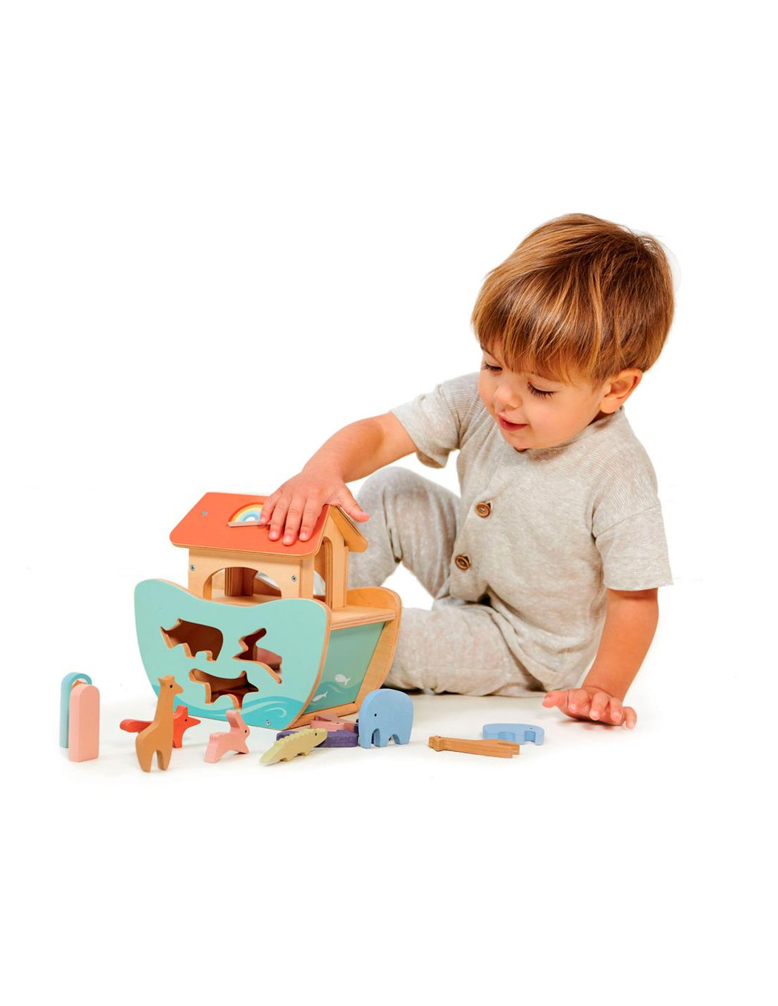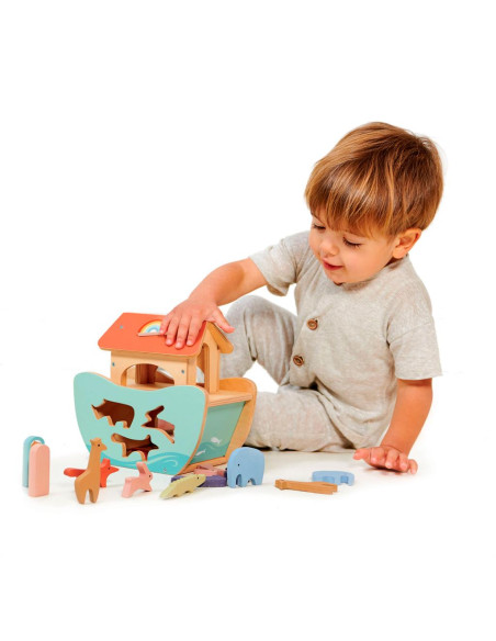 Cette arche de tri des formes est la plus petite et la plus soignée avec 6 paires d'animaux en bois massif, conçue spécialement pour les petites mains.