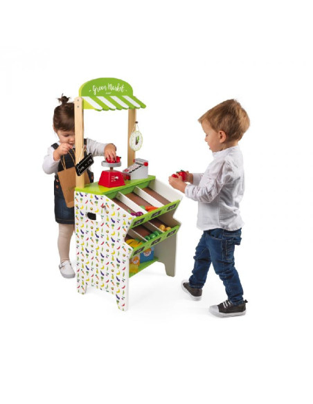 votre enfant n'aura de cesse d'imaginer et d'imiter les grands avec cette épicerie Green Market de la marque Janod.