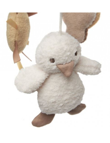 Vous pouvez attacher le mobile au parc de votre bébé ou à son lit à l'aide du support pour mobile en bois (non-inclus).