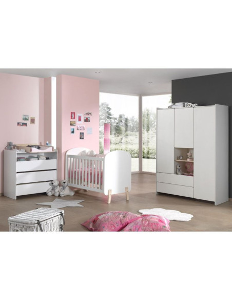 Chambre bébé 3 pces lit 60x120 garde-robe 2 portes - Kiddy - Satin White