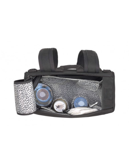 Vous trouverez aussi une pochette de rangement, un support amovible pour les petits pots ainsi q'un compartiment imperméable super pratique pour y stocker le linge mouillé par exemple.