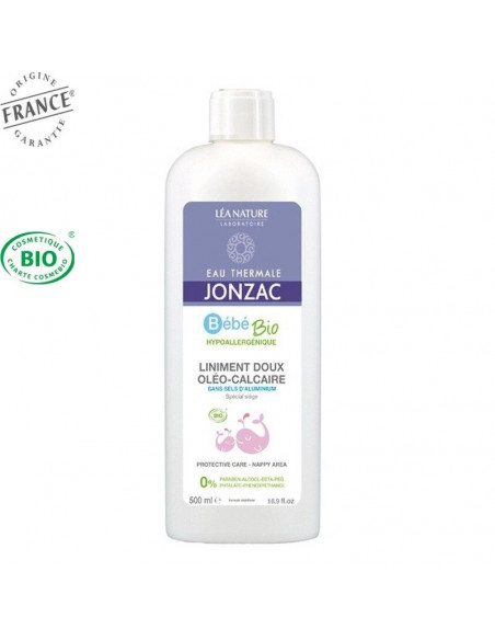 Liniment bio à base d'eau thermale de Jonzac, il nettoie délicatement les fesses de bébé, nourrit la peau et la protège !
