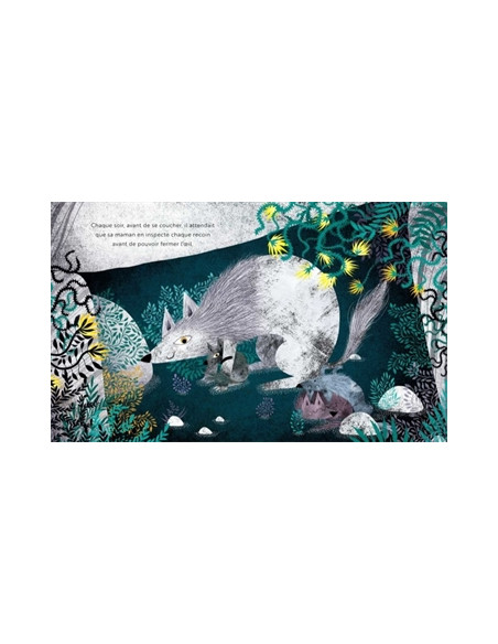 Petit Loup a toujours peur, d’une peur qui lui tord les boyaux, fait frémir son museau et trembler la pointe de ses oreilles. Pourtant, alors qu’il est perdu dans la forêt, en compagnie d’un nouvel ami, il trouvera du courage enfoui au plus profond de lui-même et réussira à surmonter ses craintes.