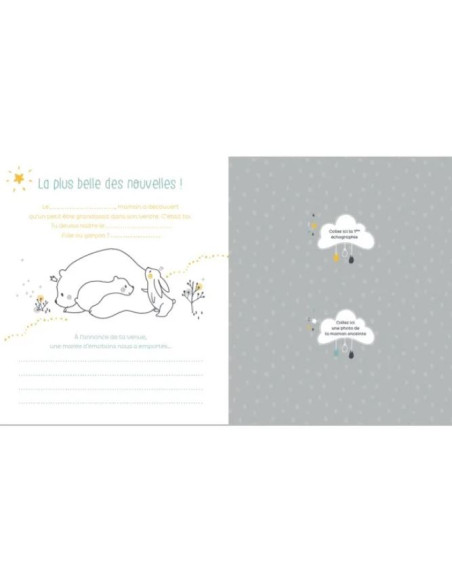 Album de bébé pour conserver les souvenirs allant de la première échographie aux premiers pas de l'enfant.