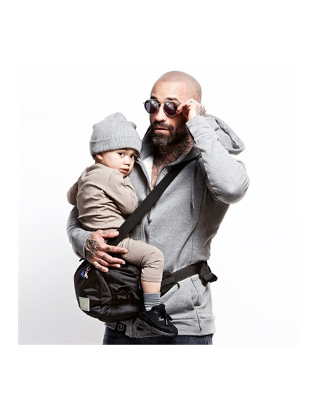 Un produit 3 en 1 qui sert aussi bien de sac banane que de hip-seat (de 7 à 12kg) avec une couverture de portage incluse.