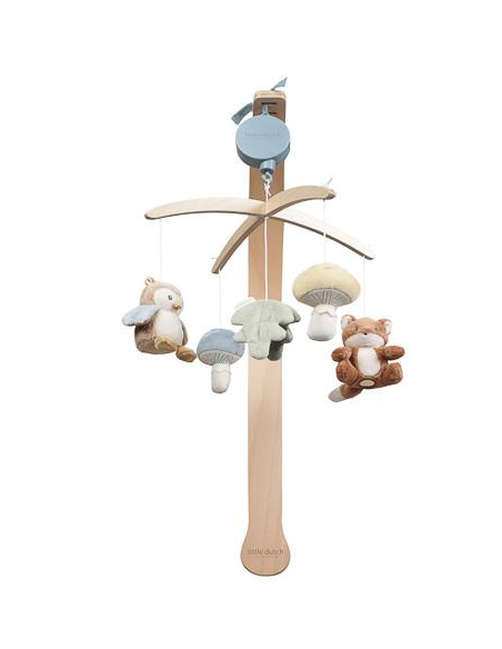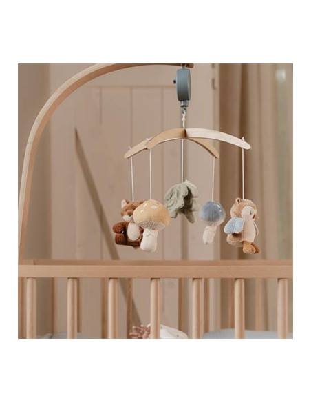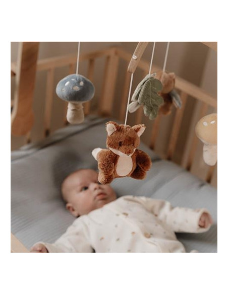 Il comprend cinq jouets suspendus différents de la collection Forest Friends : le renard, le hibou, deux champignons et une feuille.
