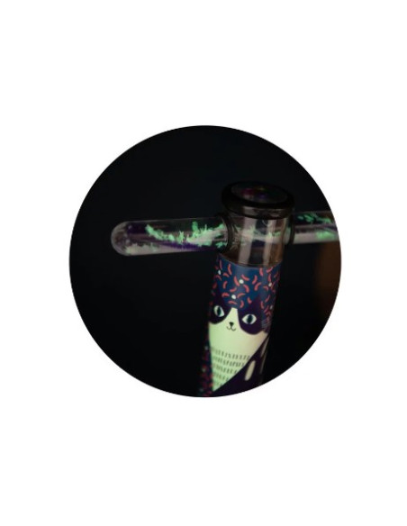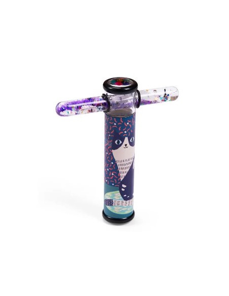 Ce kaléidoscope, avec à son extrémité un tube coulissant contenant du gel et des paillettes qui, associé aux petits miroirs du kaléidoscope, démultiplie à l'infini les combinaisons de formes et de couleurs.