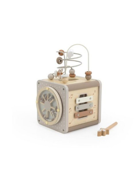Trieur de formes, xylophone, rouet, puzzle coulissant et spirale de perles, ce cube d'activités 5 en 1 a tout pour plaire et ne devrait certainement pas manquer dans le coin jeu de votre tout-petit.