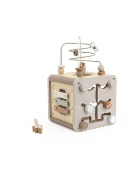 Le cube d'activités a une activité différente de chaque côté, qui, en plus des heures de plaisir, contribue également au développement de votre enfant. Il contribue à stimuler la coordination main-œil, la capacité de résolution de problèmes de votre enfant et la reconnaissance des formes. Le haut du cube peut être détaché, de sorte que vous ayez une spirale de perles lâche.