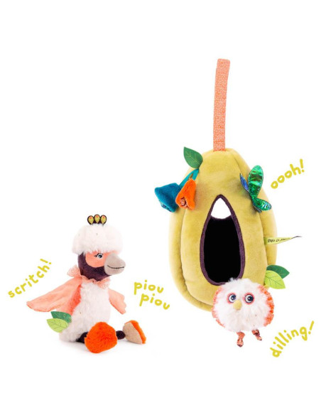 Paloma l'oiseau et son nid d'activité pour éveiller votre enfant aux bruits, couleurs et textures. Paloma s'envole et revient dans son nid pour dormir.