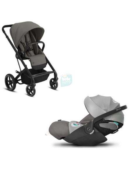 Pack duo composé d'une poussette Cybex Balios S Lux, d'un siège coque Cybex Cloud T I-Size adaptable sur la poussette et les adaptateurs nécessaires. Coloris au choix.