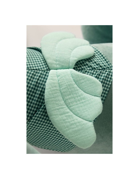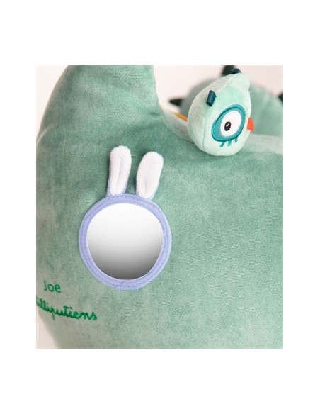 Joe le dragon est très heureux. Grâce aux nombreuses activités proposées sur son grand corps, il fait toujours naître un énorme sourire sur le visage des grands et des petits. Sa grande bouche sert de cachette ou permet de ranger le pyjama de son petit propriétaire.