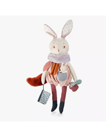 Jeu de textures et couleurs pour ce lapin et ses nombreuses activités pour divertir bébé : scritch, miroir, pouët, dilling. Bébé pourra lui faire des câlins, l'attraper et le secouer dans tous les sens.