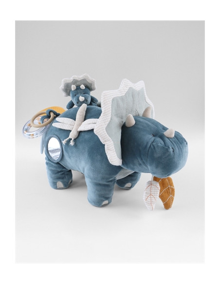 Nombreuses activités : hochet aux billes multicolores, un miroir, des jouets de dentition pour soulager les poussées dentaires, du papier froissé, un carillon à l'intérieur et des étiquettes colorées.