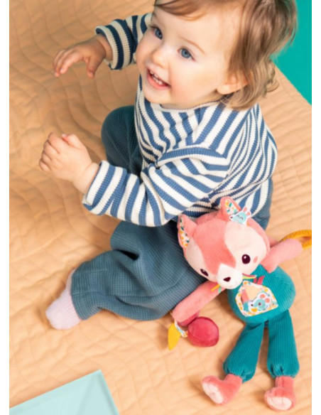 Ce jouet combine différents matériaux de manière originale et offre un éventail d’activités. Chaque petite partie de son corps est très colorée et incite à la découverte. Une source de plaisir pour les petits.