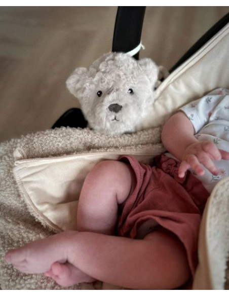 Vous pouvez facilement attacher la tête d'ours au Maxi Cosi ou à la poussette avec une ficelle.
