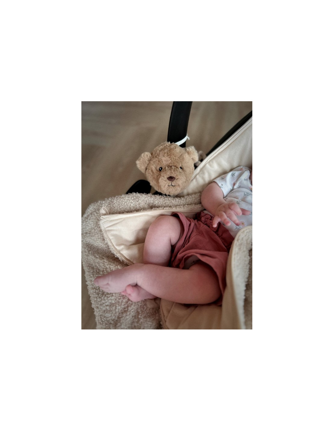 Vous pouvez facilement attacher la tête d'ours au Maxi Cosi ou à la poussette avec une ficelle.