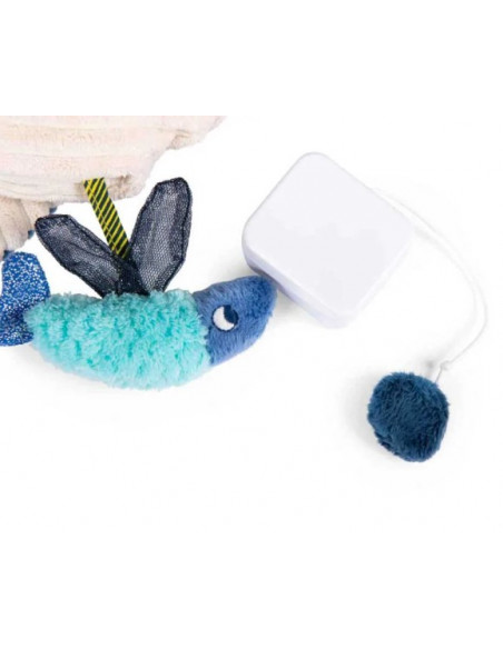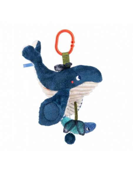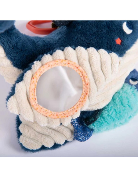Au son de sa douce mélodie, bébé s'endormira paisiblement et à son réveil il pourra jouer avec le miroir sous la nageoire et redécouvrir les diverses textures de ce tendre cétacé.